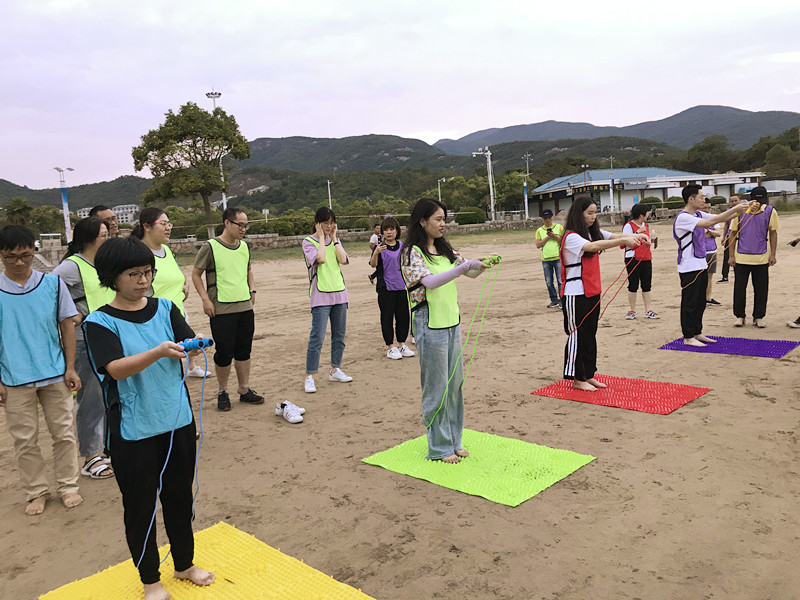 “破冰行動”首先拉開活動序幕,“破冰”即打破員工之間的拘謹和束縛,尤其是兩家單位的陌生感,讓他們在接下來的活動中能積極的參與進來。簡單的自我介紹認識之后,隊伍分成四組進行競賽,“躲避球”考驗的是團隊的整體協(xié)調(diào)配合能力;“救生圈接力賽”在裁判的一聲令下,全員接力比賽決勝負,緊張之余又趣味十足;“指壓板跳繩”難度系數(shù)高,讓隊員們摩拳擦掌,紛紛上場較量各隊實力,一起“腳”逐快樂;“聽歌識曲”輪番播放不同年代歌曲讓大家回憶經(jīng)典同時能猜出歌名?,F(xiàn)場活動熱烈,參與人員熱情高漲,笑聲不斷。